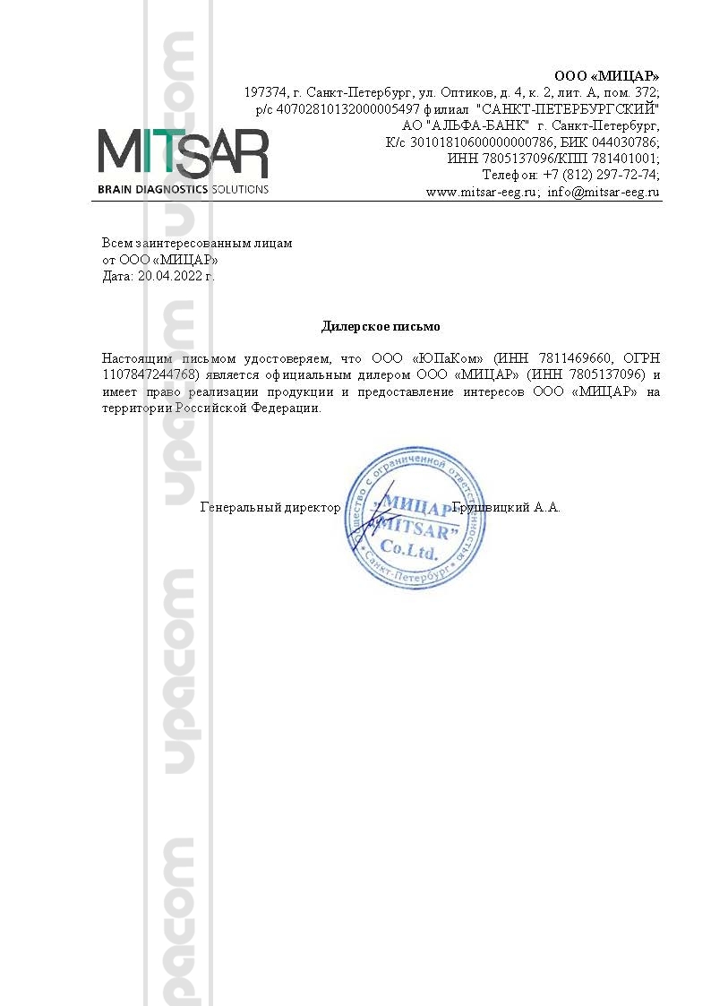 Блок регистрации «Мицар-ЭЭГ-10/70-201» (21 ЭЭГ+ 4 поли) или «Мицар-ЭЭГ-202» (24 ЭЭГ + 8 поли)