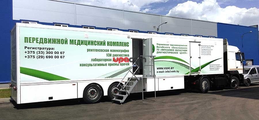 Передвижной скрининговый центр, оснащенный цифровым маммографом МАММОСКАН и цифровым флюорографом УНИОПТИМА-ЦР.