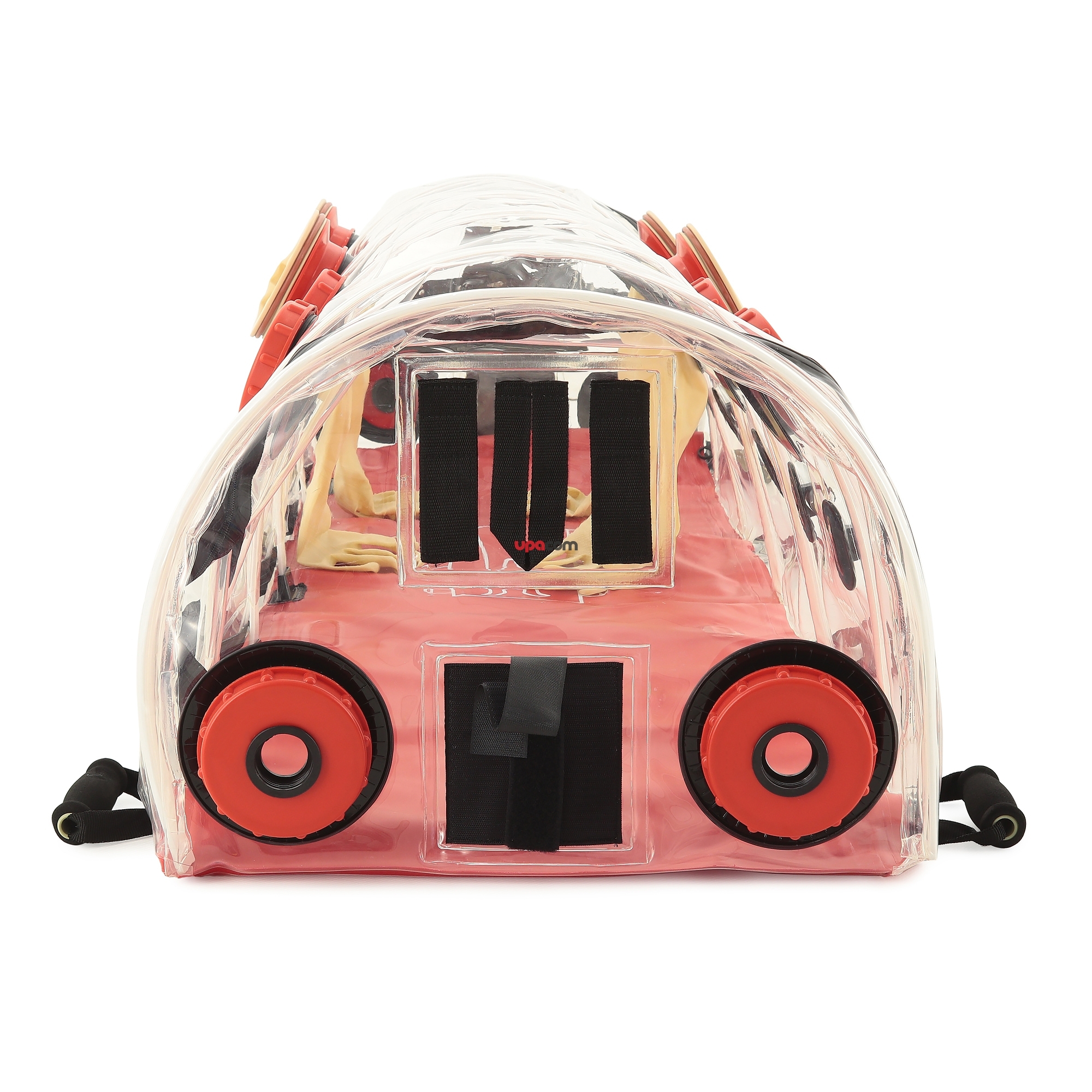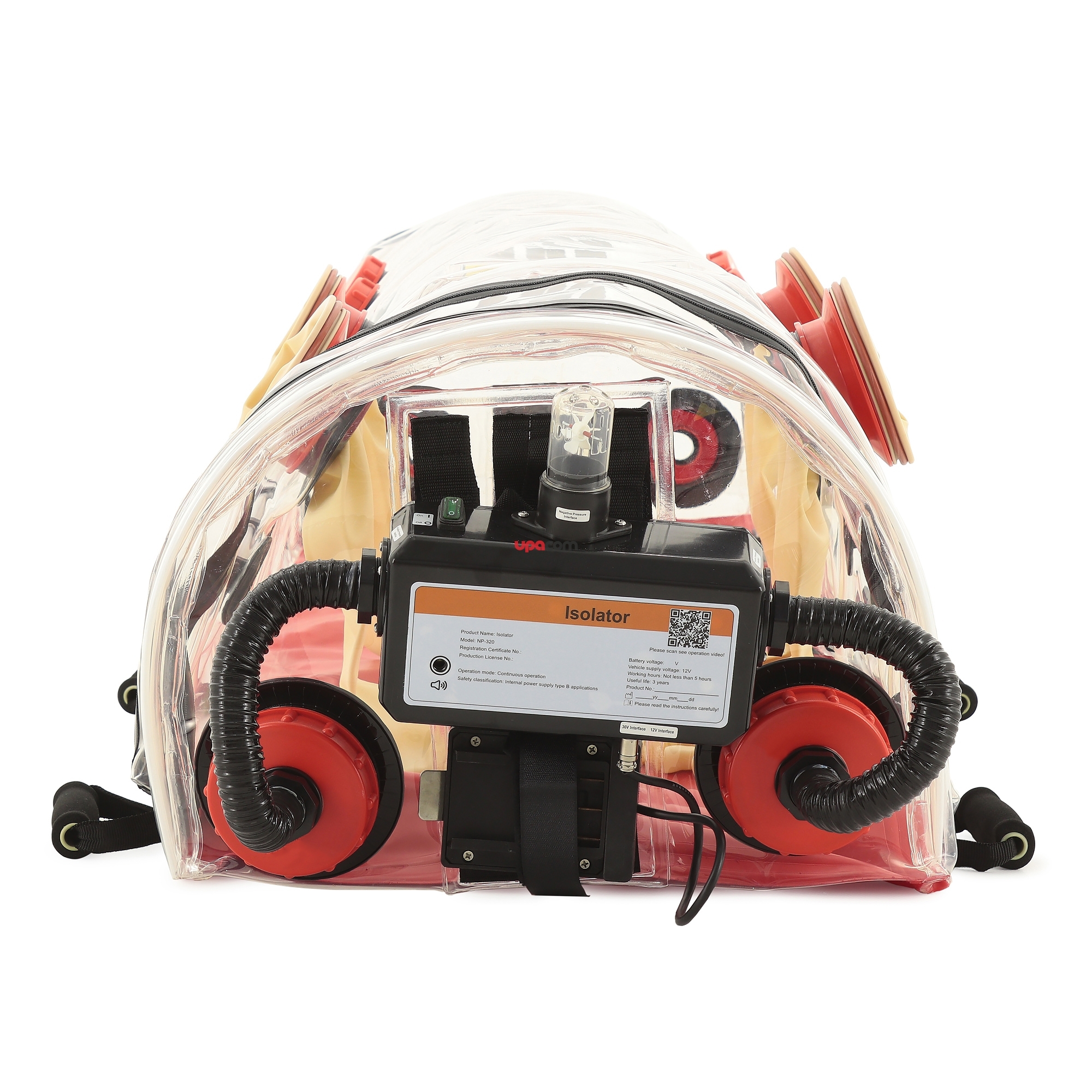 <p>Надёжное средство биологической и химической защиты предназначено для безопасной транспортировки пациентов в период пандемии и при чрезвычайных ситуациях. Создаёт надёжный барьер между внутренней и внешней средой. Обеспечивает высокий уровень безопасности как для пациента, так и для окружающих.</p> <p>В устройстве предусмотрено два режима работы, в зависимости от типа задач. В режиме положительного давления бокс исключает проникновение опасных агентов в пространство капсулы. Служит надёжной защитой от внешних воздействий для людей с ослабленным иммунитетом. В режиме отрицательного давления препятствует попаданию в окружающую среду патогенных микроорганизмов. Позволяет защитить медицинский персонал от инфицирования при перевозке тяжело заражённого пациента.</p> <p>Изделие комплектуется фильтрующими кассетами и защитными перчатками, исключающими прямой контакт с капсулой при открывании.</p> <p><span class="h2">Технические характеристики</span></p> <ul class="list-ul"> <li>Прочный изолирующий корпус из термопластичных полиуретанов, оснащенный герметичными застежками-молниями и сборно-разборным опорным каркасом</li> <li>4 пары прочных ручек для переноски бокса с пациентом</li> <li>8 закрывающихся отверстий для подачи медикаментов, продуктов питания или применения медицинских устройств</li> <li>Комплект из уплотнительных крышек, крышек под установку фильтров и воздуховодов и крышек со сменными резиновыми перчатками с рукавами</li> <li>Одна из уплотнительных крышек снабжена штуцером для подачи кислородно-воздушной смеси от кислородного концентратора или баллона (в комплект поставки не входит)</li> <li>Одна из уплотнительных крышек снабжена предохранительным клапаном</li> <li>Съемный блок с компрессором и индикатором его работы, в прочном корпусе</li> <li>Съемная аккумуляторная батарея 36В, обеспечивающая до 5 часов автономной работы компрессора, и зарядное устройство для нее</li> <li>Возможность работы компрессора напрямую от бортовой сети питания постоянного тока автомобиля 12В (подключение кабелем к гнезду прикуривателя)</li> <li>Комплект из 4-х фильтрующих кассет</li> </ul> <p><span class="h2">Габариты</span></p> <ul class="list-ul"> <li>Размеры: 195х57х43 см (изолирующий корпус в рабочем состоянии)</li> <li>Вес (нетто): 12,2 кг</li> </ul> <p><span class="h2">Мощность</span></p> <ul class="list-ul"> <li>Производительность компрессора: 100 л/мин</li> <li>Максимальное отрицательное давление, создаваемое внутри бокса: 20 Па</li> <li>Время автономной работы от аккумуляторной батареи до 5 часов</li> </ul> <p><span class="h2">Питание</span></p> <ul class="list-ul"> <li>Автомобильная сеть 12В</li> <li>Аккумуляторная батарея 36В</li> </ul> <p><span class="h2">Комплектация</span></p> <ul class="list-ul"> <li>Бокс для пациента: 1 шт.</li> <li>Фильтрующая кассета: 4 шт.</li> <li>Комплект крышек (уплотнительные, для фильтров/воздуховодов, с резиновыми перчатками: 1 комплект</li> <li>Воздушные шланги (воздуховоды): 1 комплект</li> <li>Аккумулятор и зарядное устройство: 1 комплект</li> <li>Компрессор с защитным корпусом: 1 шт.</li> <li>Кабель подключения к гнезду прикуривателя автомобиля: 1 шт.</li> <li>Руководство пользователя: 1 шт.</li> </ul>
