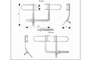 • Выполнен для операций на левом глазу. Конструкция разработана для оттеснения одновременно и верхнего, и нижнего века, что позволяет получить доступ к глазному яблоку.